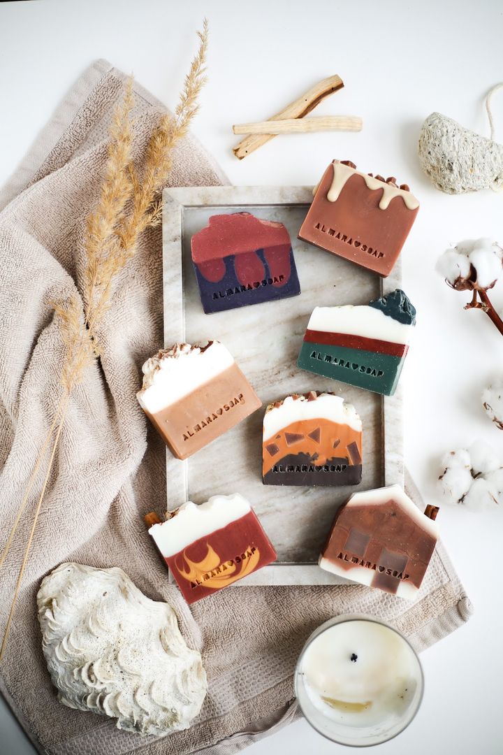 Ačkoliv to někoho může překvapit, krásné barvy a zdobení našich mýdel opravdu zajišťují pouze přírodní složky. V našich mýdlech najdete třeba mletou kávu, kakaový prášek, pyré z ovoce (jablka) či zeleniny (mrkev, dýně), bílou barvu mýdlům dodává oxid zinečnatý. Všechny ty hravé a syté barvičky, která naše mýdla dělají tak speciální, jsou minerální pigmenty.