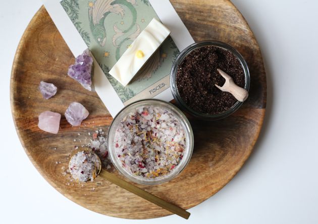 El regalo perfecto para los amigos de Piscis es la sal de baño TIME TO RELAX, que convierte el agua del baño en un precioso color amatista, la piedra de la suerte del signo. Ricas en aceite esencial de lavanda, estas sales relajan tanto el cuerpo como la mente.