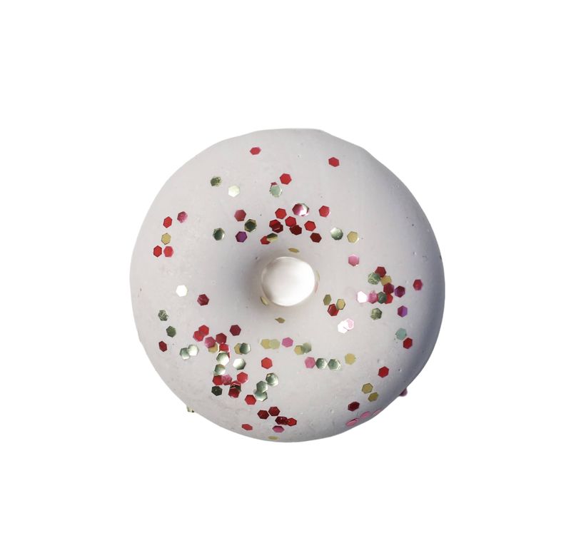 La base bianca decorata con glitter rosa-rossi crea un look giocoso e allegro, perfetto come piccolo regalo per qualcuno a cui teniamo.