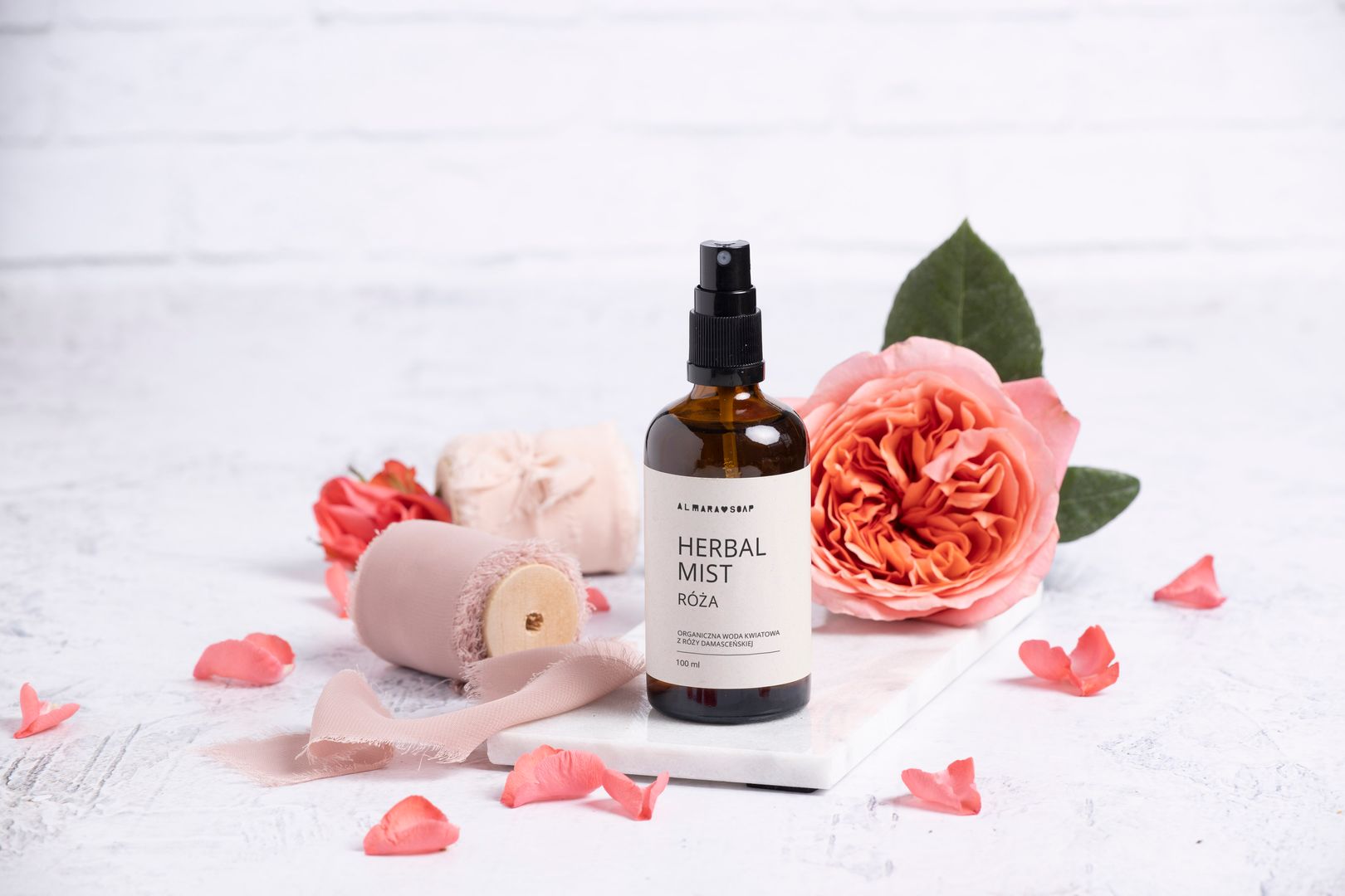 Różany hydrolat z organicznych składników przeznaczony jest dla skóry suchej, dojrzałej oraz wrażliwej. Róża znana jest ze swoich właściwości łagodzących, nawilżających i przeciwzmarszczkowych. Delikatnie oczyszcza i harmonizuje skórę, a do tego przepięknie pachnie.