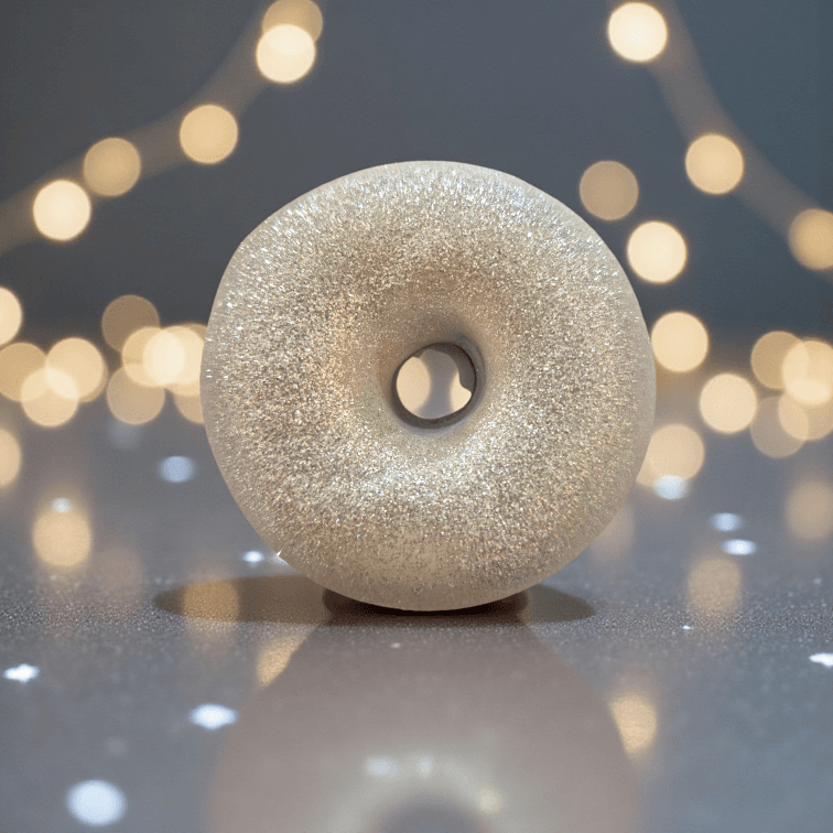 Jemný, sněhově bílý design se zářivými třpytkami.