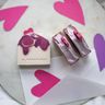 Bílý základ zdobený fialovo-růžovým mramorováním, jemným shimmerem a malým srdíčkem z něj dělají něžně hravý a estetický kousek — ideální jako drobný dárek z lásky.